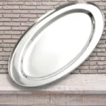 Ce plateau de service rectangulaire en acier inoxydable de qualité , mesure 40 cm de long, 26 cm de large et 2,5 cm de haut.